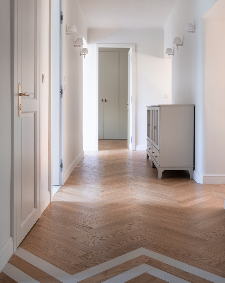 Celostna prenova 120 m² velikega staromeščanskega stanovanja iz prve polovice 20. stoletja. Občutna sprememba arhitekture prostora, termična in gradbena sanacija, oblikovanje individualnih detajlov in vgradnega pohištva.